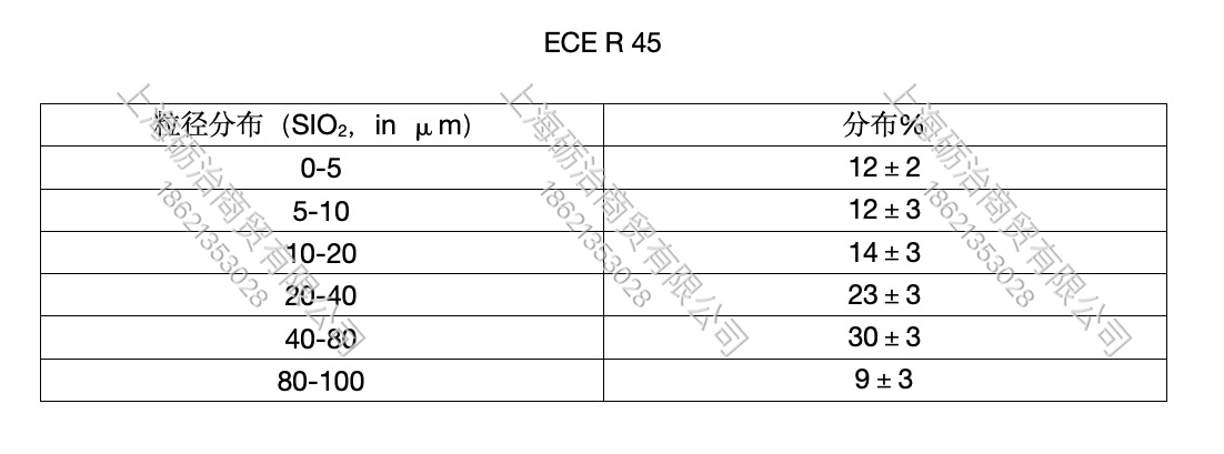 本產品是符合 ECE R45 2.1.1 (2010) 第2.1.1節的規定、R112、R113 測試粉塵